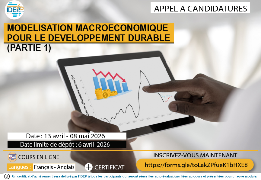 Lancé avec succès en 2016, le programme IDEP eLearning vise à offrir cinq (5) cours interactifs bilingues par an, avec un minimum de 100 personnes par cours (50 par langue), soit 500 bénéficiaires supplémentaires par an. L